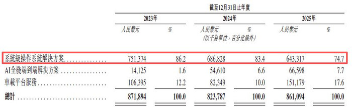 收入结构变化印证了这少许:四肢斑马智能营收撑执的系统级操作系统处罚有洽商板块,收入从2023年的约7.51亿元(占比86.2%)降至2024年的约6.87亿元(占比83.4%),并在2025年进一步萎缩至约6.43亿元(占比74.7%),呈现十足金额与占比的双降态势。