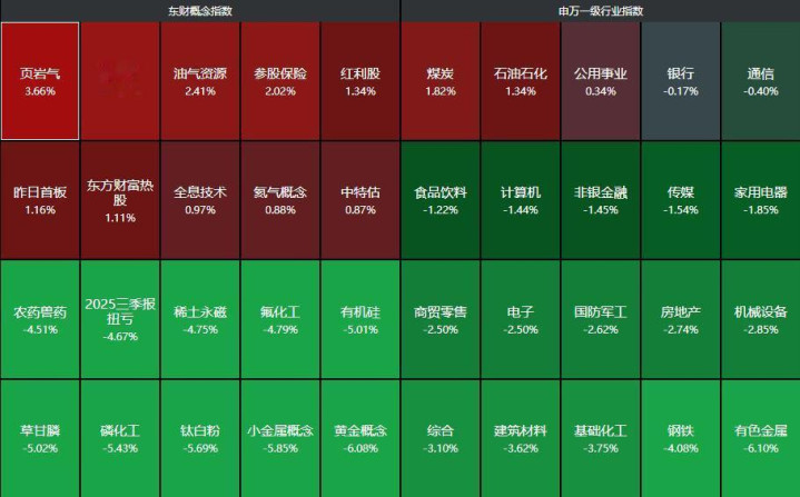 分行业来看,仅煤炭、石油石化、公用业绩三大行业高涨,有色金属、钢铁、基础化工等行业领跌。