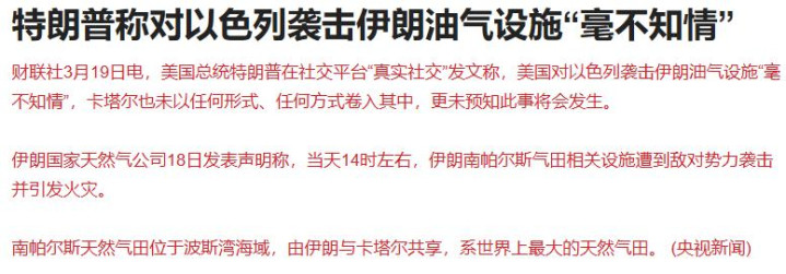 好意思国总统特朗普在支吾平台“真确支吾”发文称,好意思国对以色列伏击伊朗油气步调“绝不知情”,卡塔尔也未以任何形势、任何状貌卷入其中,更未先见此事将会发生。特朗普还暗示他反对陆续伏击伊朗的动力基础步调,但若伊朗握意如斯,好意思利坚合众国不管是否得回以色列的匡助或甘心,齐将往日所未有的强舍弃量澈底迫害扫数南帕尔斯气田。