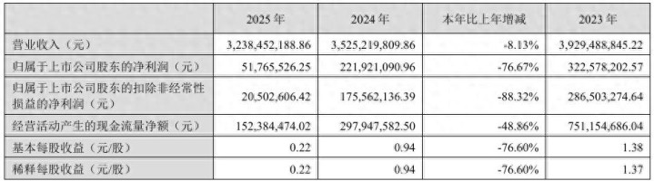 2025年,公司完了营收32.38亿元,同比减少8.13%;包摄于上市公司激动净利润5,176.55万元,同比减少76.67%。