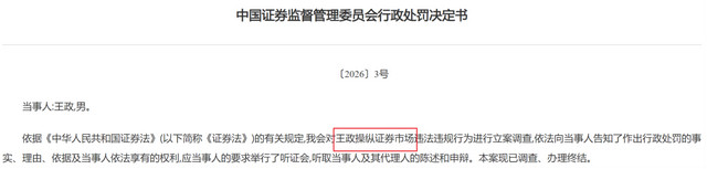 值得一提的是,证监会〔2026〕1号《行政处分决定书》也指向控制市集。
