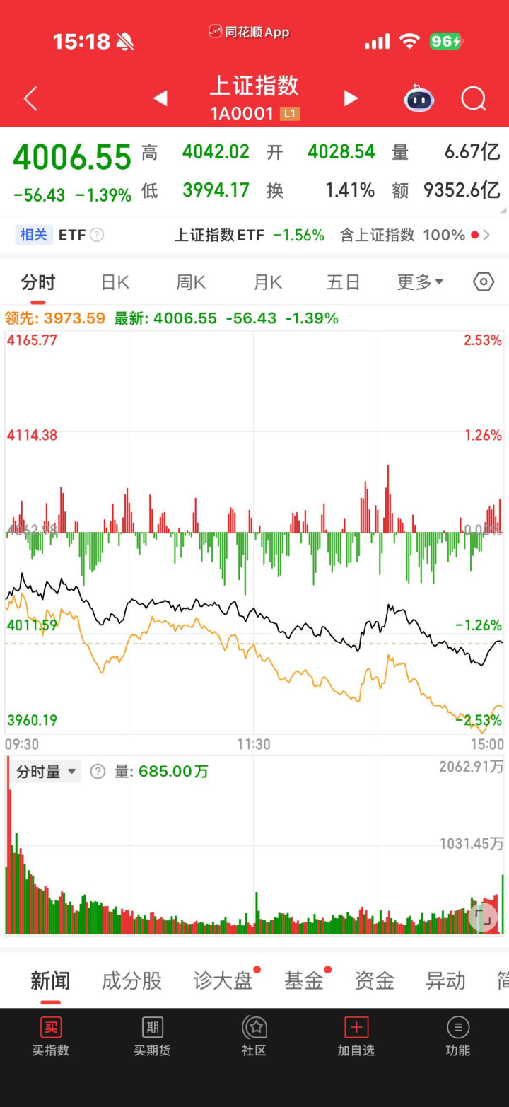 沪指盘中跌破4000点