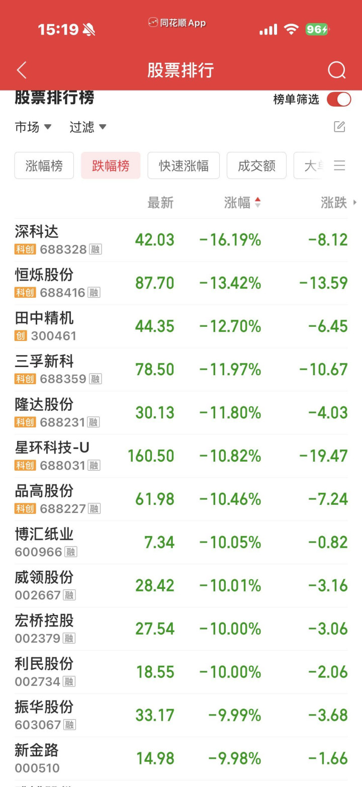 许多个股跌幅超10%