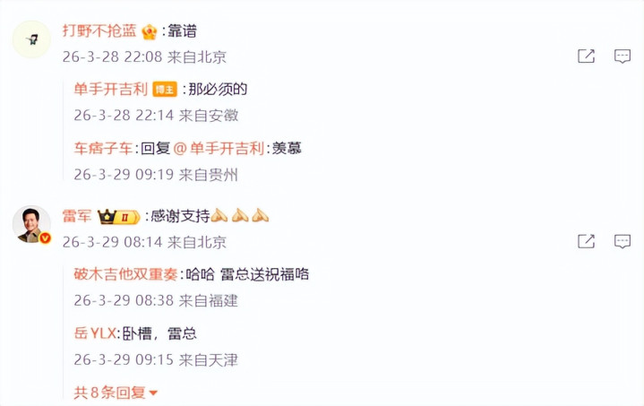 雷军也第一时分看到了这条微博,用浅陋四个字陈说:“感谢维持”。