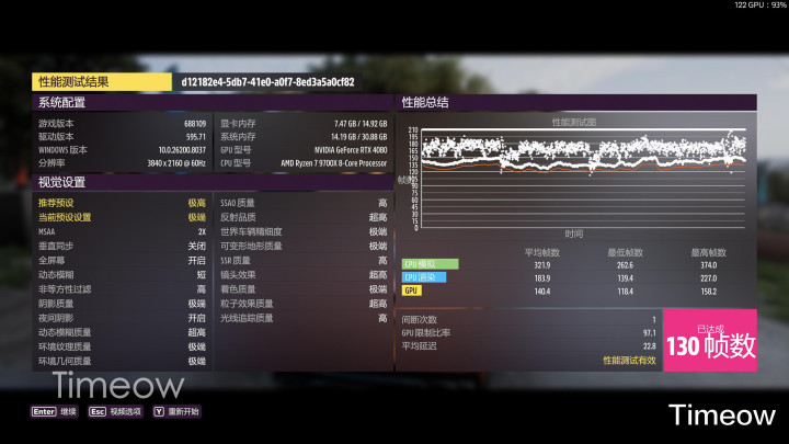 平均帧140.4,最低帧118.4,能达成130帧的目的帧率,践诺上在144Hz的4K显现器上相称完好。