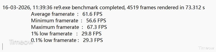 平均帧61.6,1%low帧29.8,合座照旧相比畅通的,略有小卡顿、但不明显。