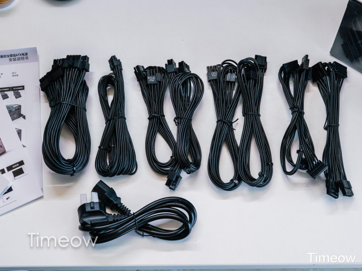 行动机械众人的首款电源,它了接管全模组化筹算,除调换线除外,其搭配的线材都是用料塌实的PVC蟒纹线,质感相对更柔滑一些,走线收拾起来更便捷生动,体验也会好许多。