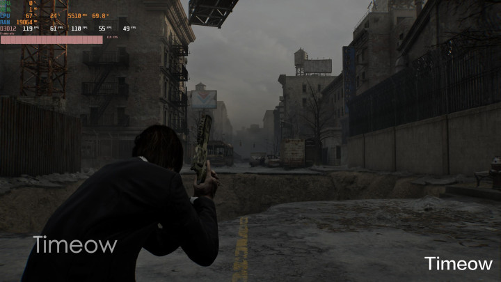 平均帧116,1%low帧5.1,这里就相称丝滑了,体验照旧很可以的。但此处的贴图、光影作念的亦然真暗昧,像是赶工的。