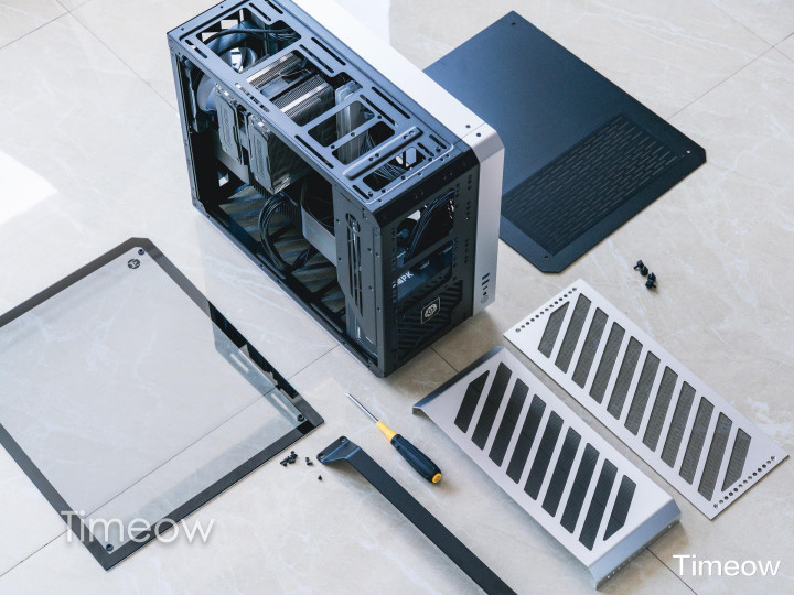 除了钢化玻璃侧板外,它的合座是全金属材质: