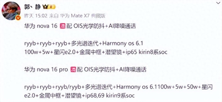 先给大众划重心,这波nova 16系列的配置组合拳平直拉满:麒麟双芯、全系潜望长焦、方形前置传感器、100W超等快充,还有鸿蒙6.1+星闪2.0加持,状貌版12+256GB起售价2599-2899元,Pro版3499-3799元,基本和前代价位持平,这赤忱,你们品品!