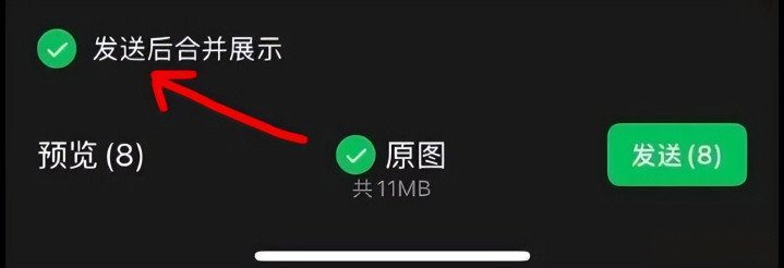 要是勾选这个选项之后,发送出去的图片就会被折叠在整个泄漏,统共图片只占用一条信息的位置。
