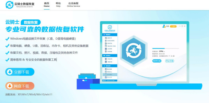 第1步:从官网下载云骑士数据复原软件,按提醒装好。