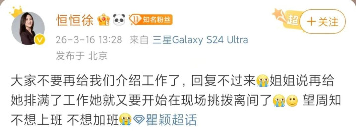 翻红后,她不仅婉拒了大批媒体采访,也莫得第一时期出咫尺直播间“321上相连”。违抗,她的经纪东谈主更在搪塞媒体公开喊话,“全球不要再给咱们先容责任了……望周知,不念念上班,不念念加班。”