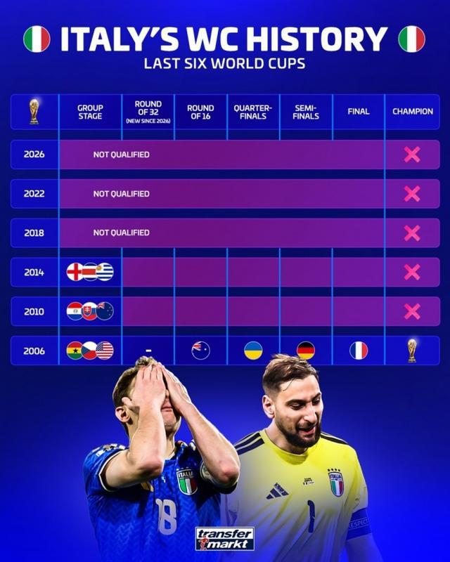 博亚体育(中国) 意大利寰球杯得益:2006年之后贯串2届小组出局,近3届未进正赛