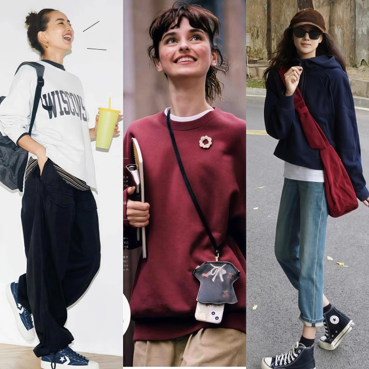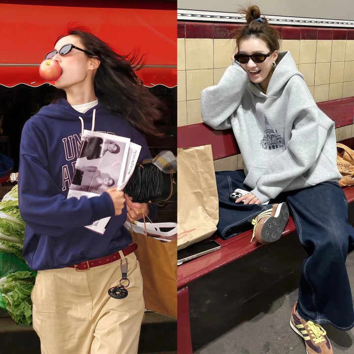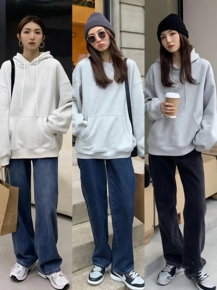 卫衣的尺码请记着,偏大一码是上限,再大就全是饱和布料堆在身上了,好多东谈主认为卫衣越大越松越端淑,大错特错,oversize到肩线掉到大臂位置、袖子长过手指、衣摆盖住半条裤子,看着不是慵懒,是真实懒得好好穿衣服。