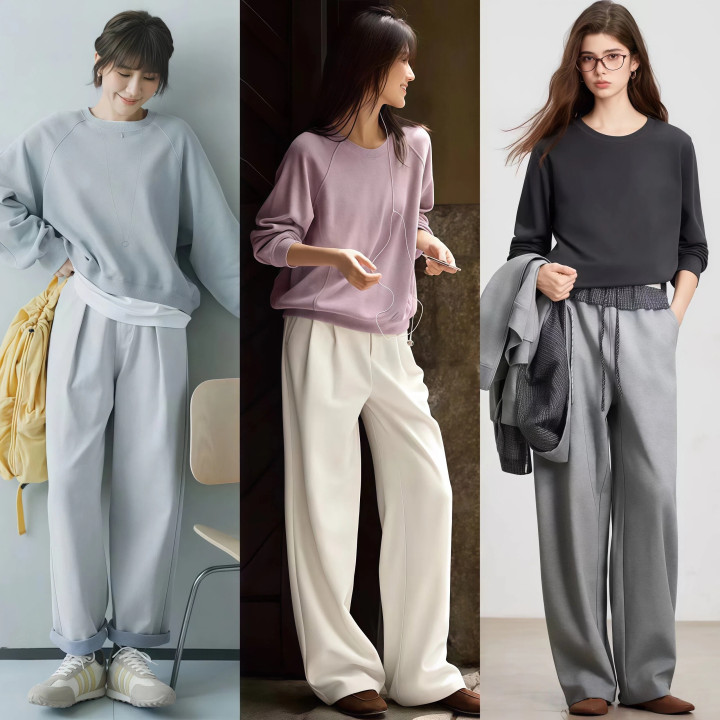 <一>春天穿卫衣,保举配这几条阔腿裤,最端淑