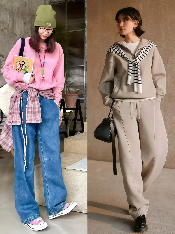 “卫衣+阔腿裤”这个组合,本年春天太火了,决然走到哪,都能看到有东谈主这样穿,上身柔滑下身宽松,外出都备无须记挂搭配,这套慵懒公式,稳稳占据了春日出街穿搭的顶流位置。