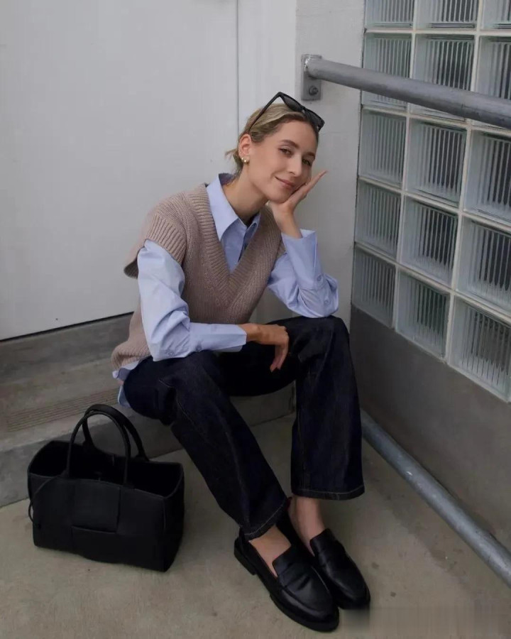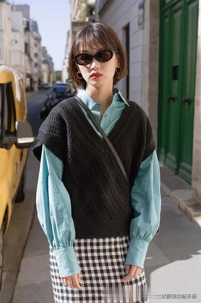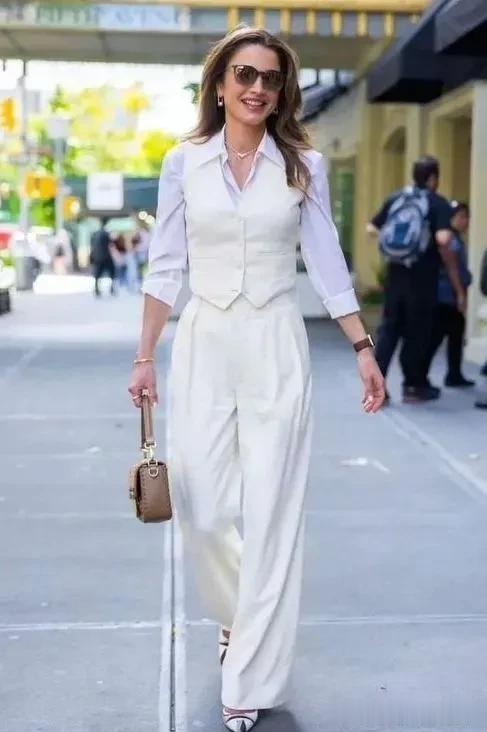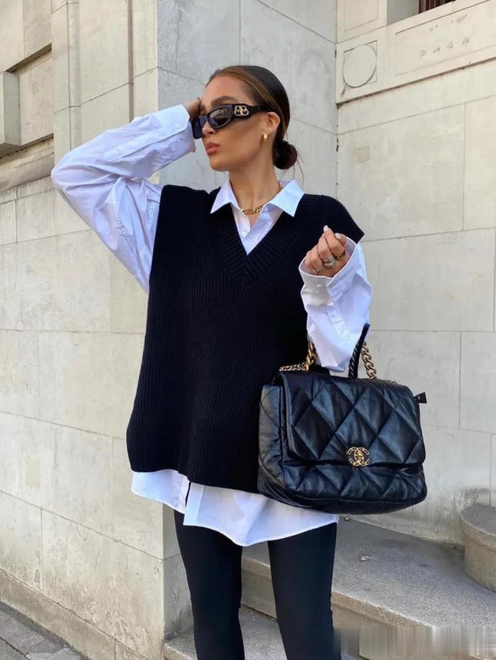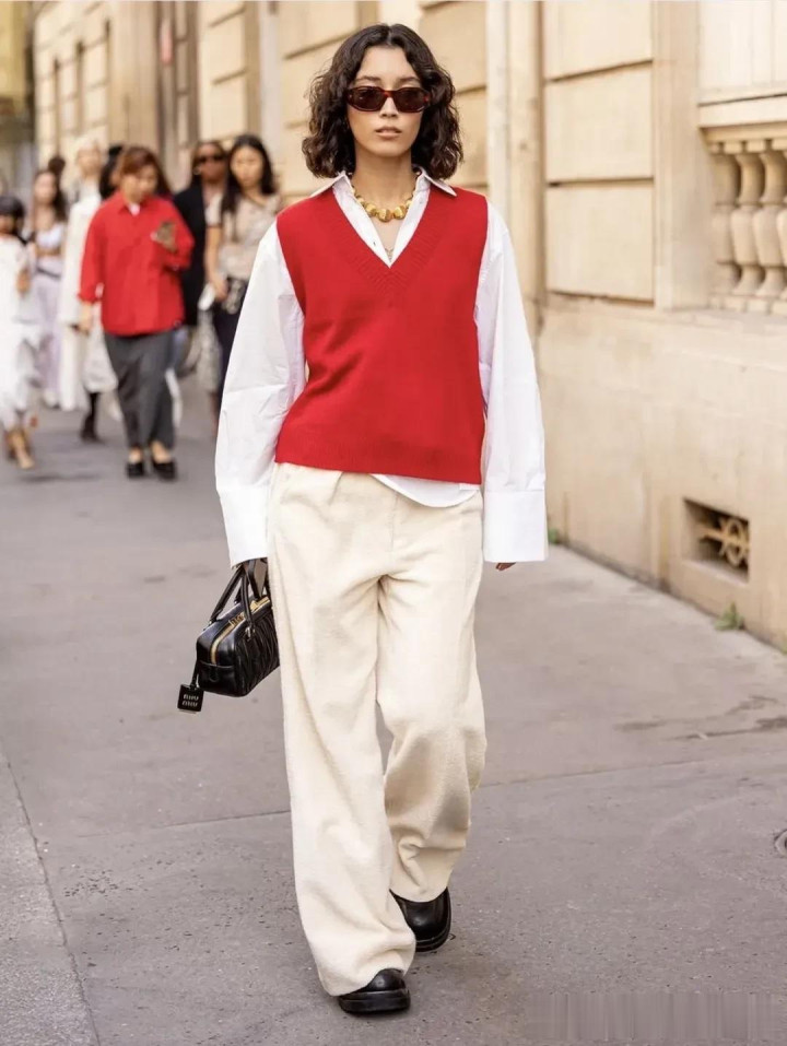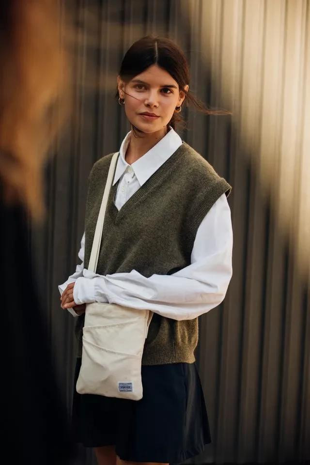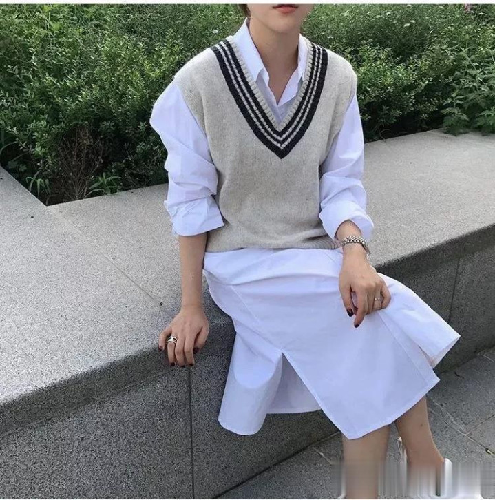 马甲搭配白衬衫,
