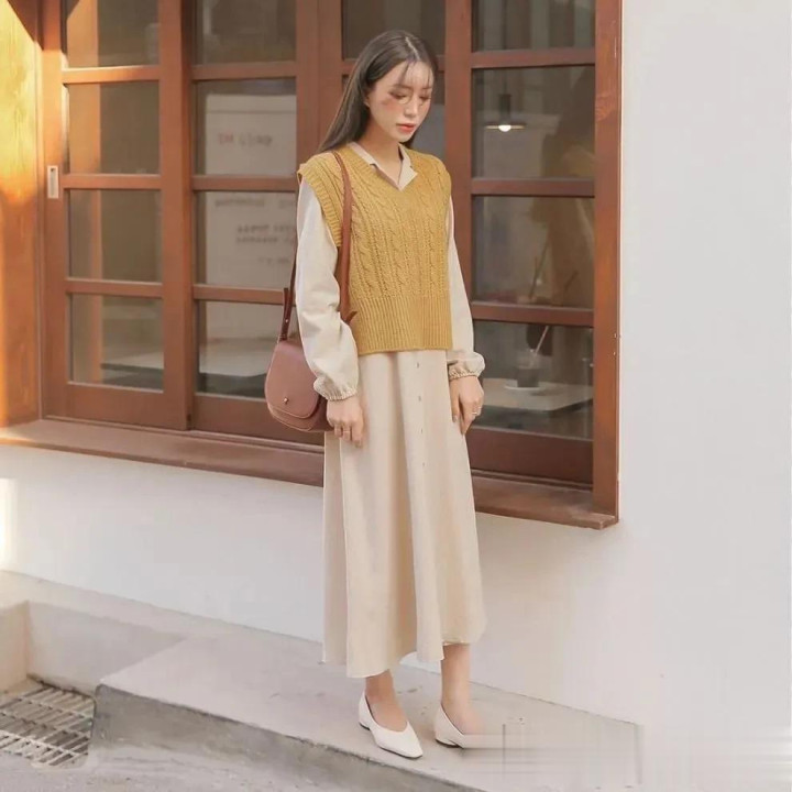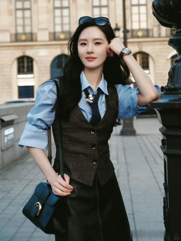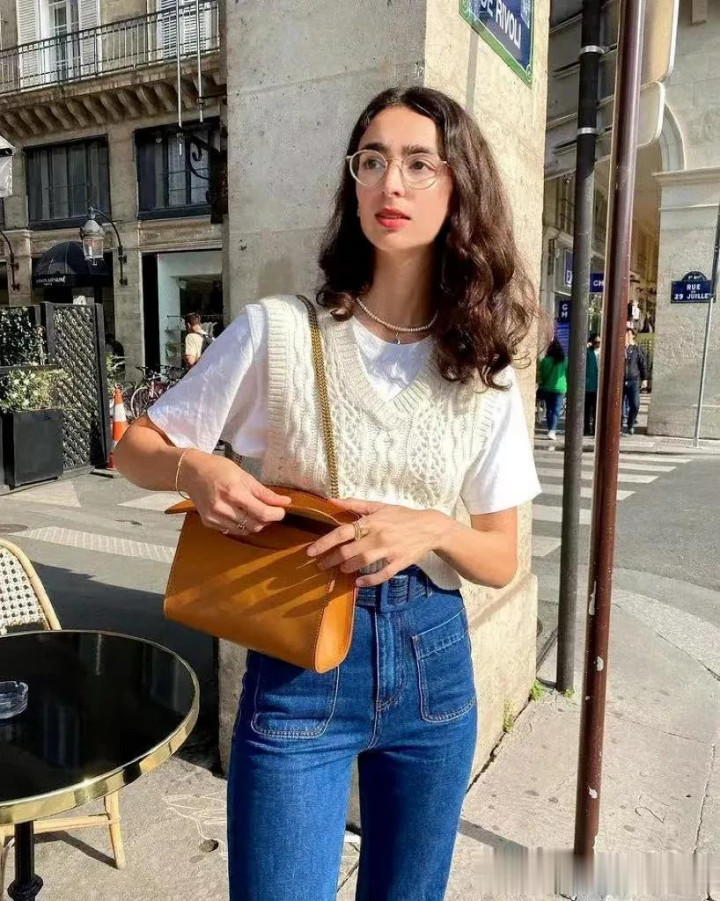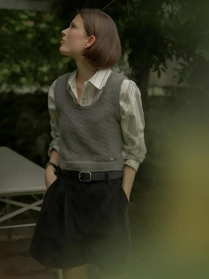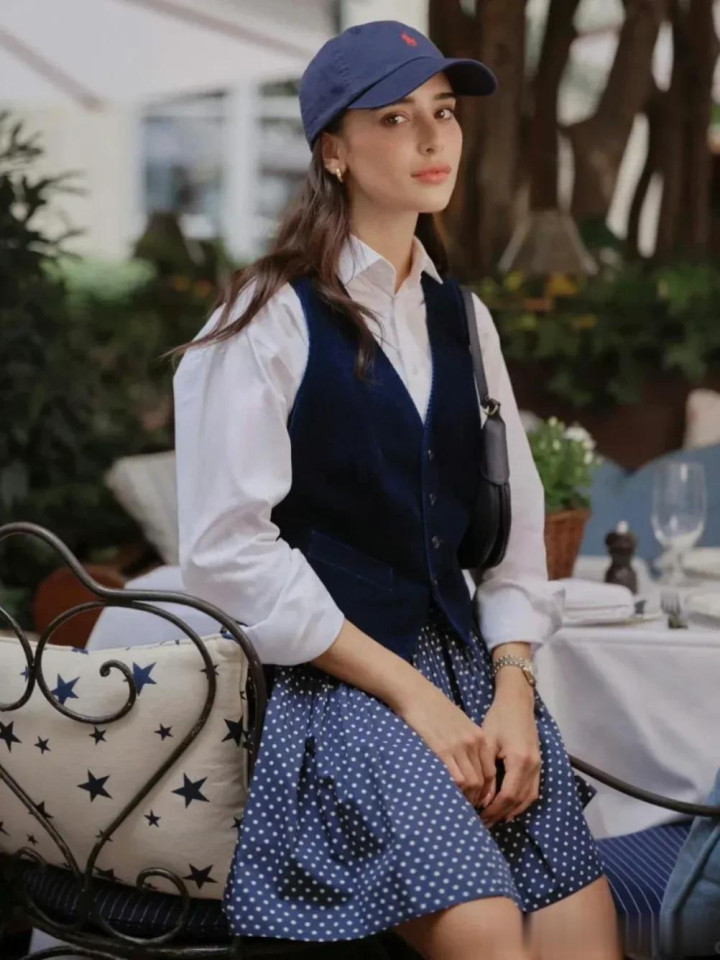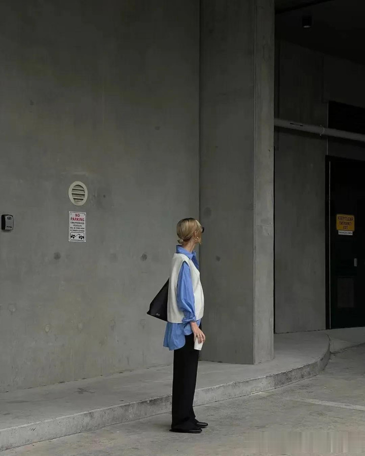 马甲搭配白衬衫,