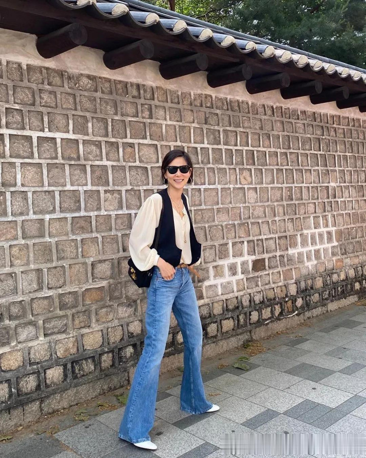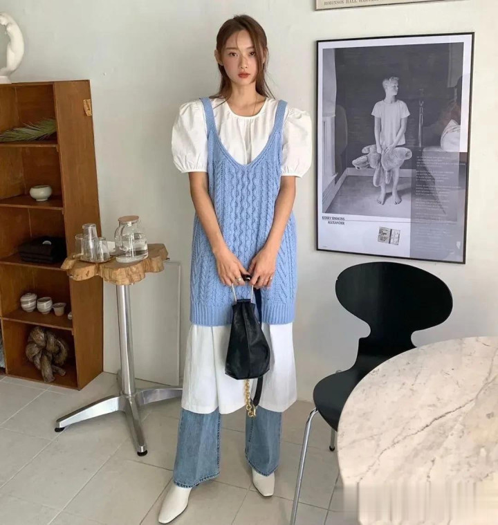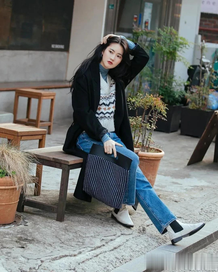 搭配牛仔阔腿裤,从简畴前,