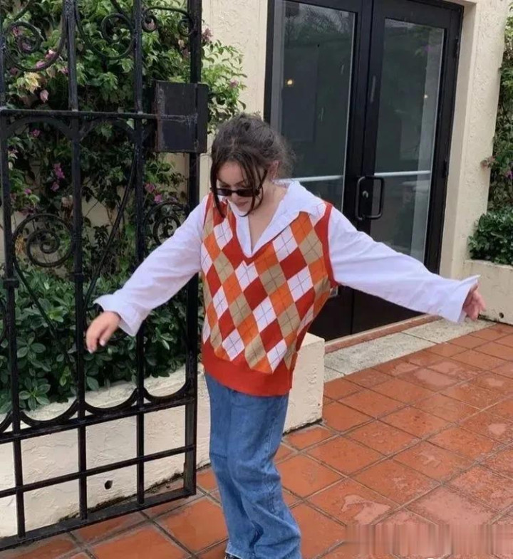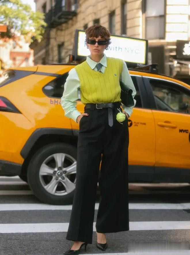 而彩色格纹背心,能在视觉上,
