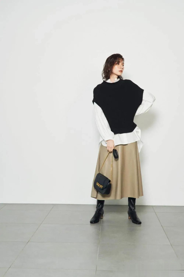 用长款背心来勾画弧线,