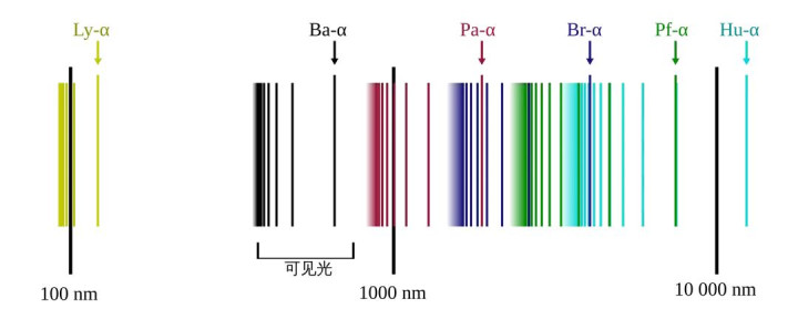 “粗结构”的氢原子辐射光谱(图片来源:维基百科)