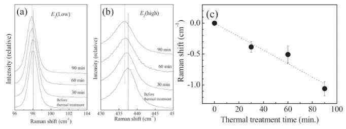 图4:ZnO 粉末在氢气中 400℃ 退火不同期间的拉曼谱的 E2 低频(a)和高频(b)形貌的变化;(c)高频形貌的拉曼位移跟着退火时候变化的关系。扣问东谈主员通过在 300℃-600℃ 的氢气中还原 ZnO 粉末,利用拉曼光谱定量扣问了 ZnO 粉末中的氧空位。他们发现跟着还原温度的培育,一支与氧离子振动关联的峰逐渐向低频场所迁移。而经过从头氧化,这个峰又规复到了启动的位置。由于该峰的位移量跟着氧空位含量的加多而变大,博亚体育(中国)是以不错据此约略估算样品中氧空位的含量(图4)。DOI: