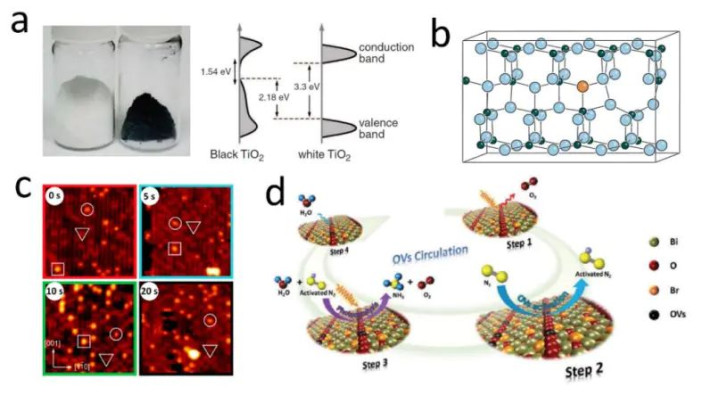 图1:氧空位的构筑技能(a)高温氢化;(b)掺杂;(c, d)高能粒子轰击