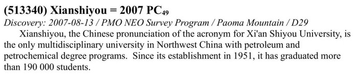 博亚体育app中国官方入口 海外永恒编号为513340号的小行星以西安石油大学定名