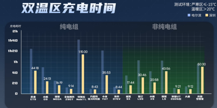 这次测试之是以极具参考价值,在于其放手了传统评测“定圆定温”的局限性。测试团队区分设定了20℃支配的深圳(常温区)与零下20℃支配的哈尔滨(极寒区) 两大场景,遮盖了从中国最南到最北的顶点温差,且参评车型多达15款,简直囊括了目下市面上通盘标榜快充的旗舰车型。