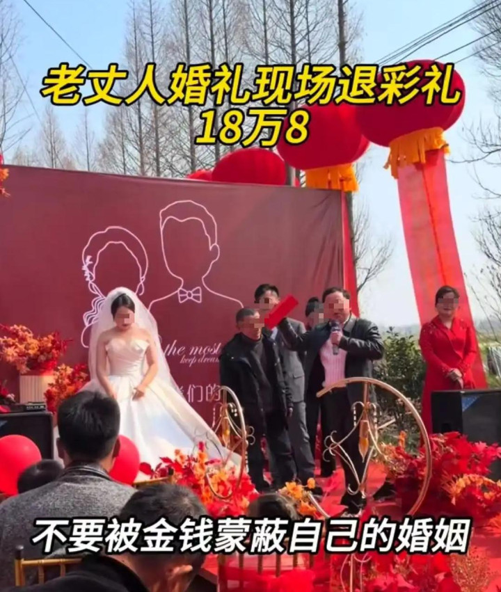 浙江一双新东说念主成婚时,长者收下彩礼后,现场全额返还。