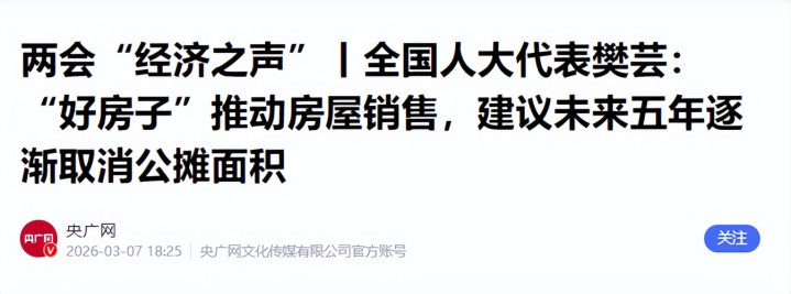 东说念主大代表建议,“十五五”技术分步取消公摊销售,改用套内面积计价。