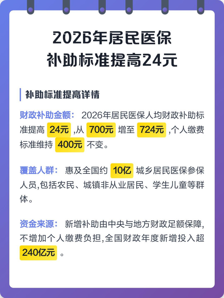 住户医保东说念主均财政补助再提高24元。